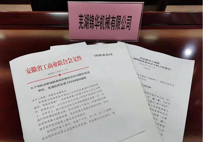 蕪湖錦華機械有限公司作為安徽省工商聯系統抗疫先進單位和先進民營企業代表列席會議并受到表彰。